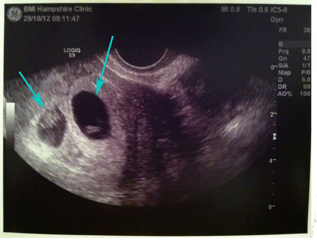 The “bad” news is that one of those (the one on the left in the picture) is not as well developed as the other one, and Mr O’Sullivan said that he was going to sit on the fence for a while and wait to see how it keeps developing. I have another follow up scan in two weeks’ time to see how number two is doing.