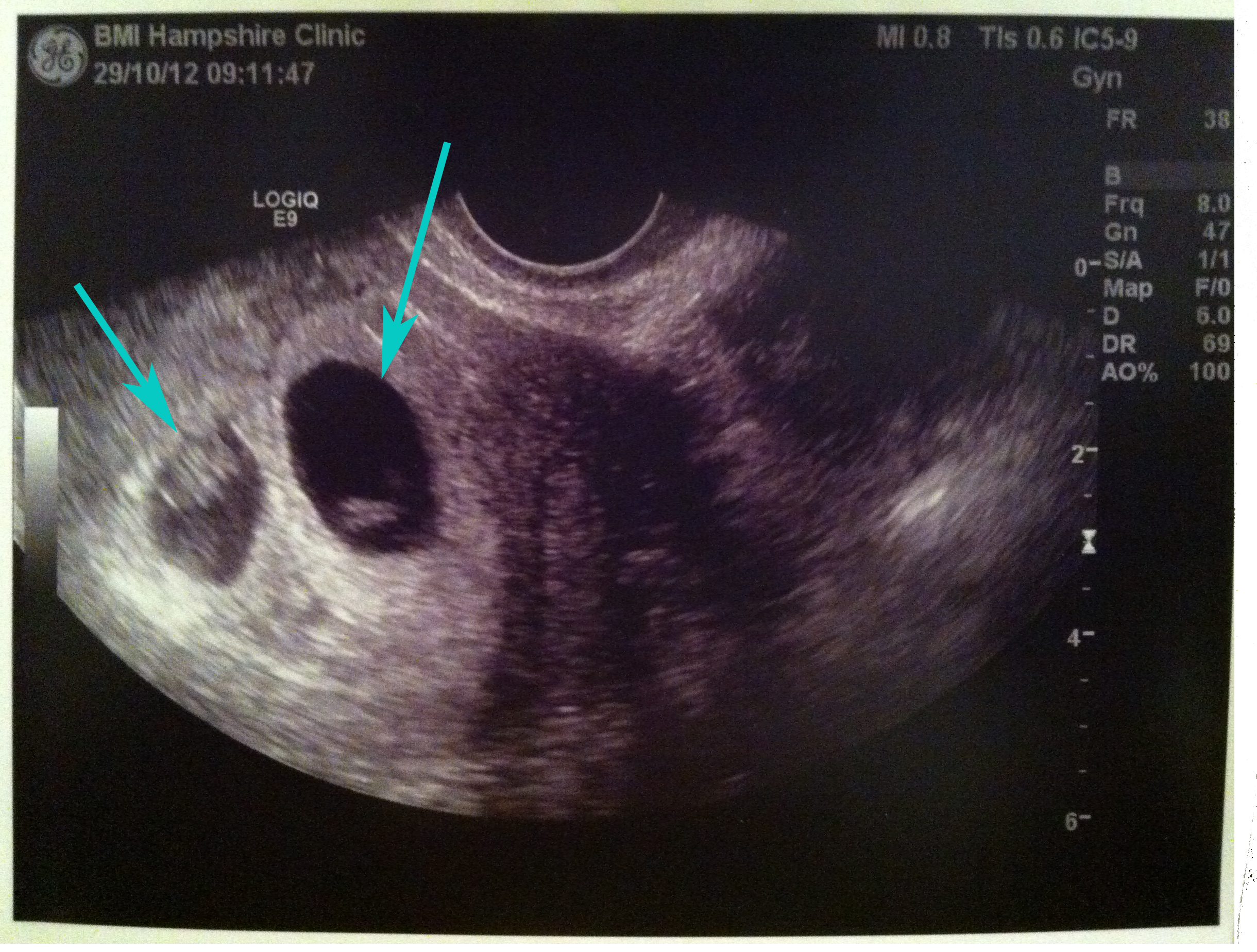 I had my first scan (internal) yesterday at the Hampshire Clinic. The main purpose was to see if there was a heartbeat and to measure the size of the embryo and the sack, were there one.