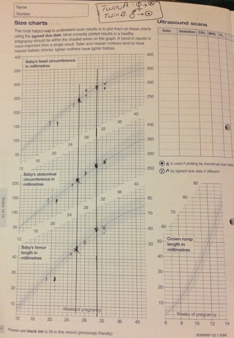 At the obstretic foetal scan, we saw that Pixie has stopped growing at the same speed than Dixie. Still nothing to worry about, but obviously there’s a small concern that she will stop developing sooner rather than later. They are running out of space!