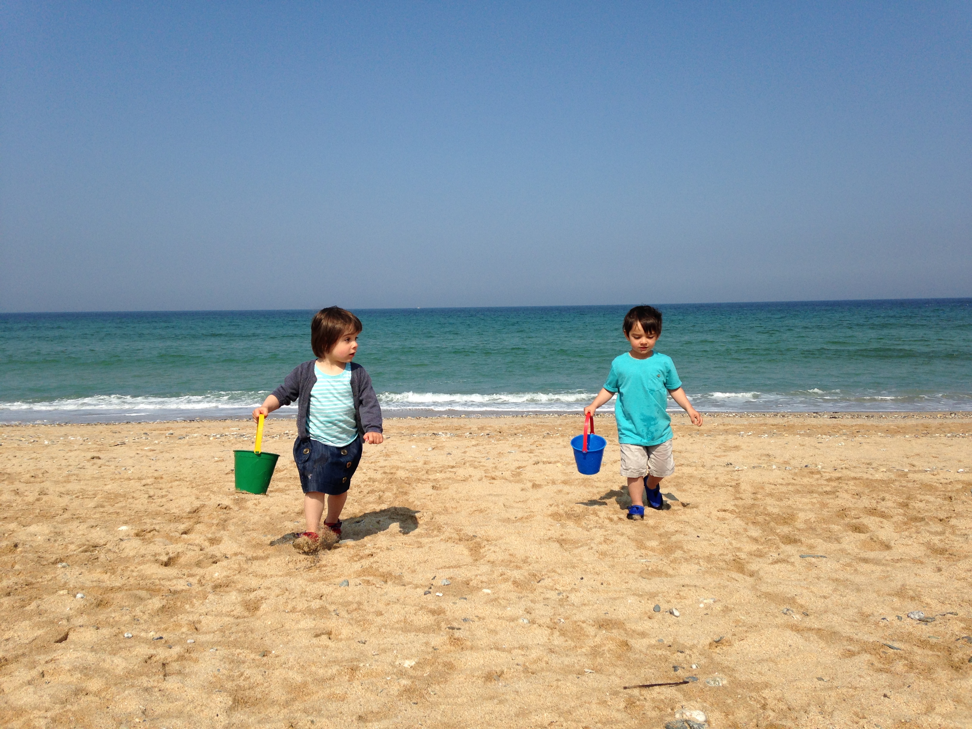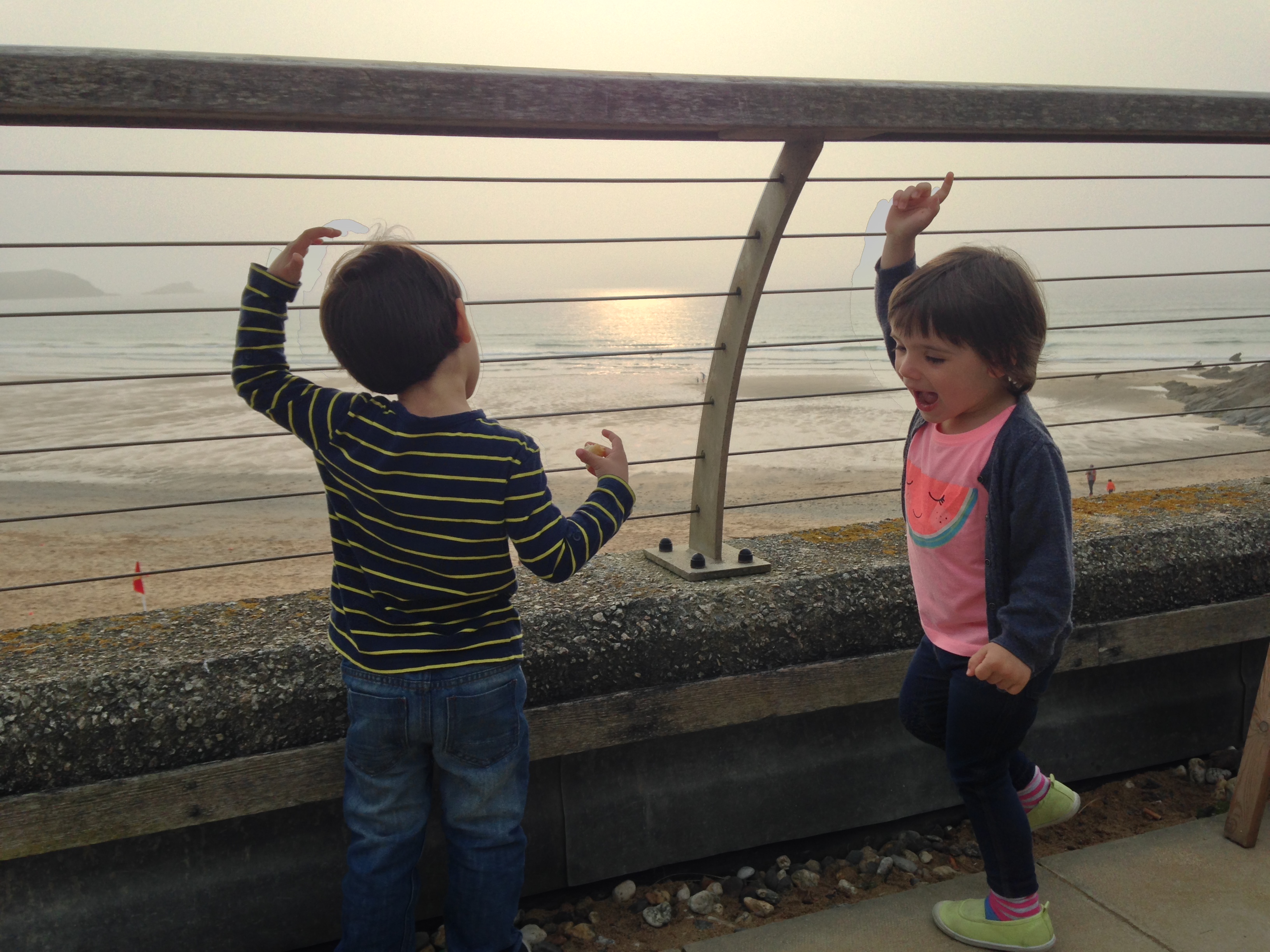 And finally, Fistral. We went to Fistral beach twice. The first time we went to an amazing restaurant for dinner. The restaurant is called The Fish House, and we had THE BEST dinner there. It is a small place, very intimate and family run, and so comfortable! I honestly can’t praise it enough. After dinner, we went down to the beach, where we just enjoyed a very nice late afternoon, watching the surfing schools and the locals walking their dogs. The kids absolutely loved it. So much so that we had to go back the following day! We packed a picnic and got ready to spend a lovely day at the beach. However the weather wasn’t the best, there was a very chilly breeze. On top of that, we had a small accident, where Elisa fell into the sea when she was at the shore picking up some water in her bucket with grandad. The wave just caught them by surprise! But the shock of the very cold water was too much for poor Elisa, and after that it just wasn’t the same and we packed up and went back to the house.